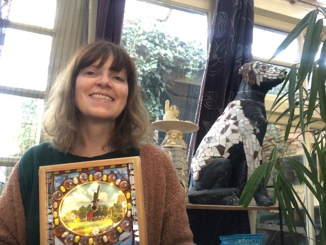 Geïnspireerd door kunstenaars als Gaudi en Hundertwasser maakt Agnes mozaïeken van serviesscherven en keramische tegels. Zij tovert afgedankte materialen uit de kringloopwinkels om tot kunstzinnige objecten of bruikbare artistieke voorwerpen.